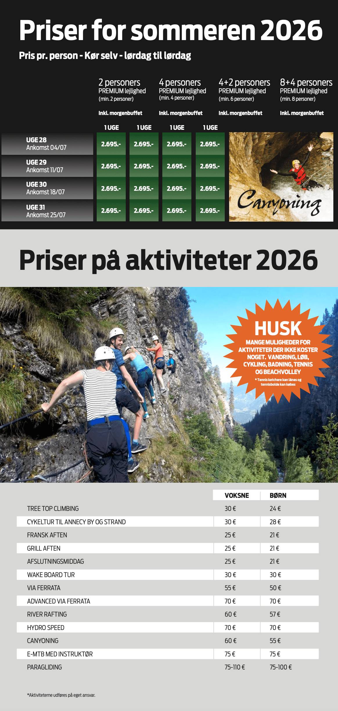 Aktiviteterne udføres på eget ansvar.